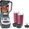 Equipped with three manual speeds, a pulse function, and a single-serve mode, this blender offers complete control and versatility for all your blending needs. The two included 16-ounce Nutri Ninja to-go cups with spout lids let you blend personalized smoothies and take them on the go—ideal for busy mornings or active lifestyles.